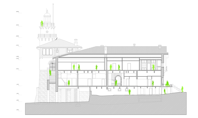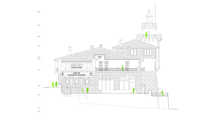 "La construcción de este edificio respondió a la alta siniestralidad del puerto de Bilbao a lo largo de la historia y a la imperiosa necesidad de contar con un espacio de mayores dimensiones que pudiera albergar otros programas. Conocida como la “Casa de Náufragos”, se trata de un brillante testimonio de la interpretación de un edificio dedicado a la asistencia altruista de la ciudadanía dotado con el simbolismo de un faro de estilo neo-vasco."