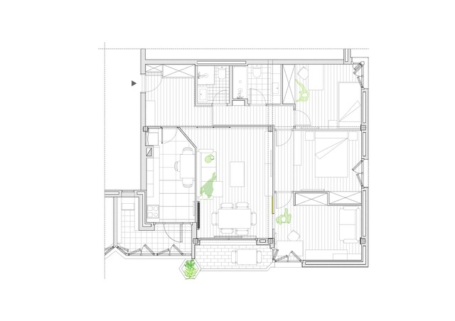 La actuación se focaliza en la creación de un espacio salón-comedor dinámico, que forma un todo con el recibidor y el nuevo acceso a la cocina.